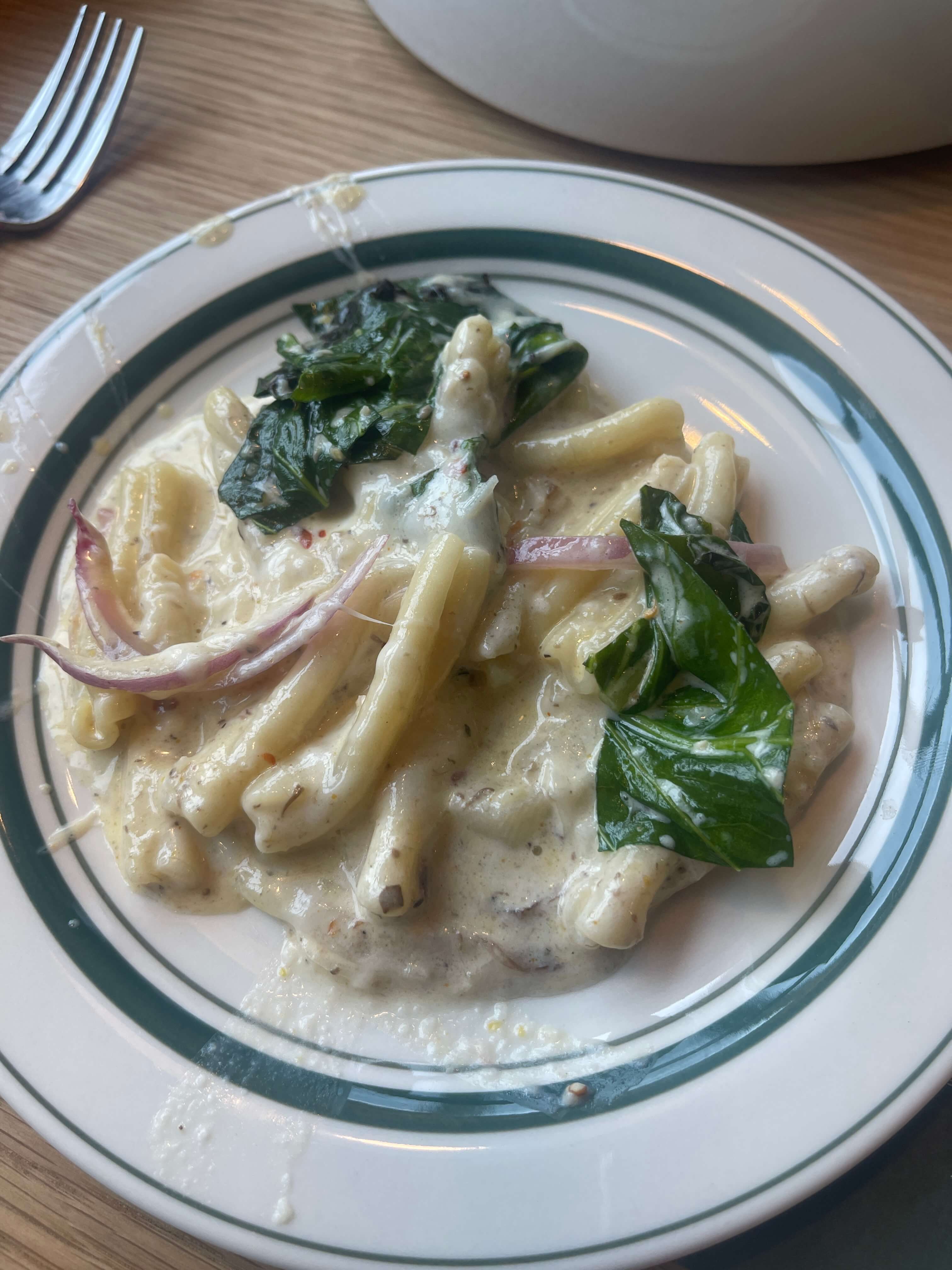 그리고 잘게 썰린 파스타면이 나왔는데 이름이 카사레치아 면이라고 합니다. 이게 좋았던 게 파스타소스와 너무 잘 어우러져서 좋았습니다. 수란을 터트려서 소스랑 비벼먹는 것도 아주 맛있었습니다.  야채의 식감이 살아있어서 너무 맛있었던 트러플 크림 파스타였습니다.