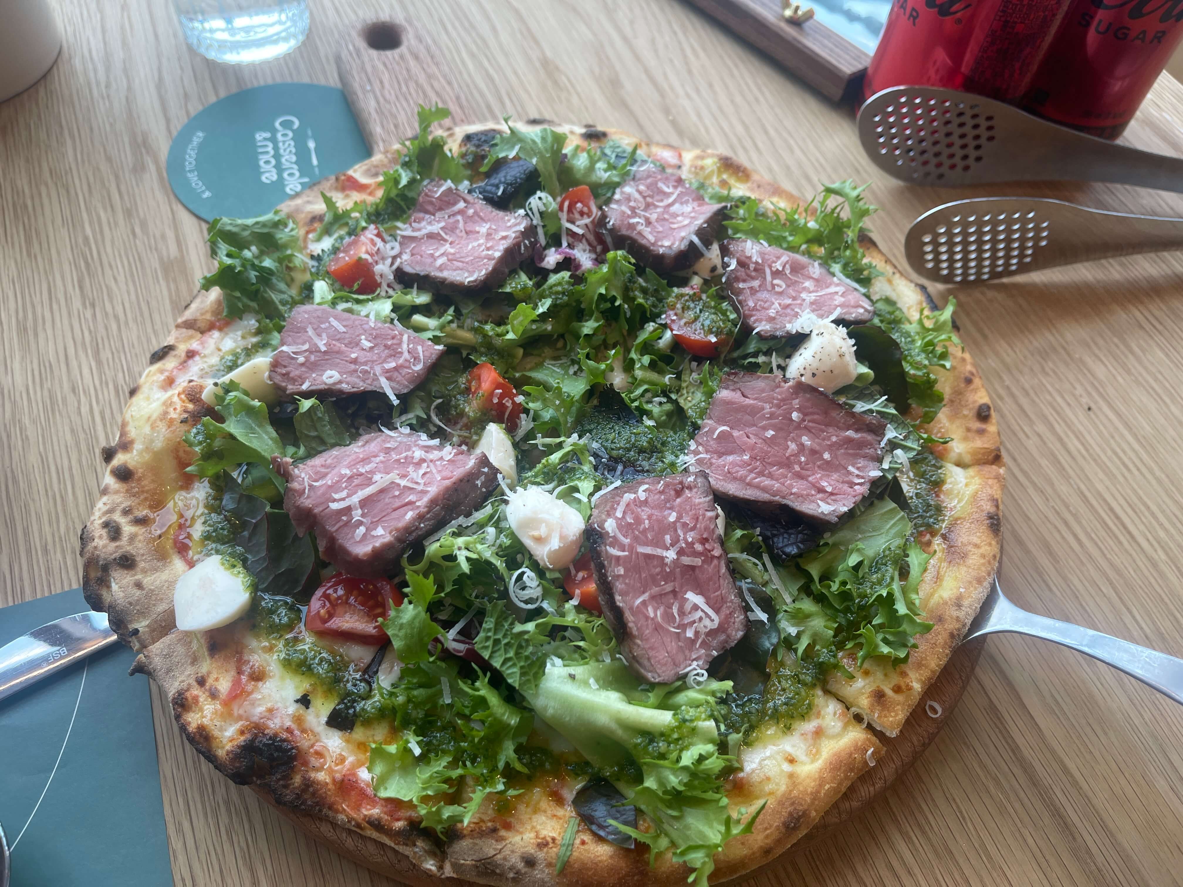 부드러운 채끝 등심 스테이크와 신선한 야채 그리고 미니 모차렐라를 잘 어우러진 비스테카 피자입니다. 캐서롤 앤 모어가 마음에 드는 게 야채들이 참 신선하다는 것입니다. 야채의 식감이 음식을 훨씬 더 맛있게 만들어주는 거 같습니다.
